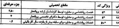 براساس این خبر ، تعرفه خدمات روانشناختی و مشاوره 5 میلیون و 6 هزار ریال برای درجه دکترا 5 میلیون…